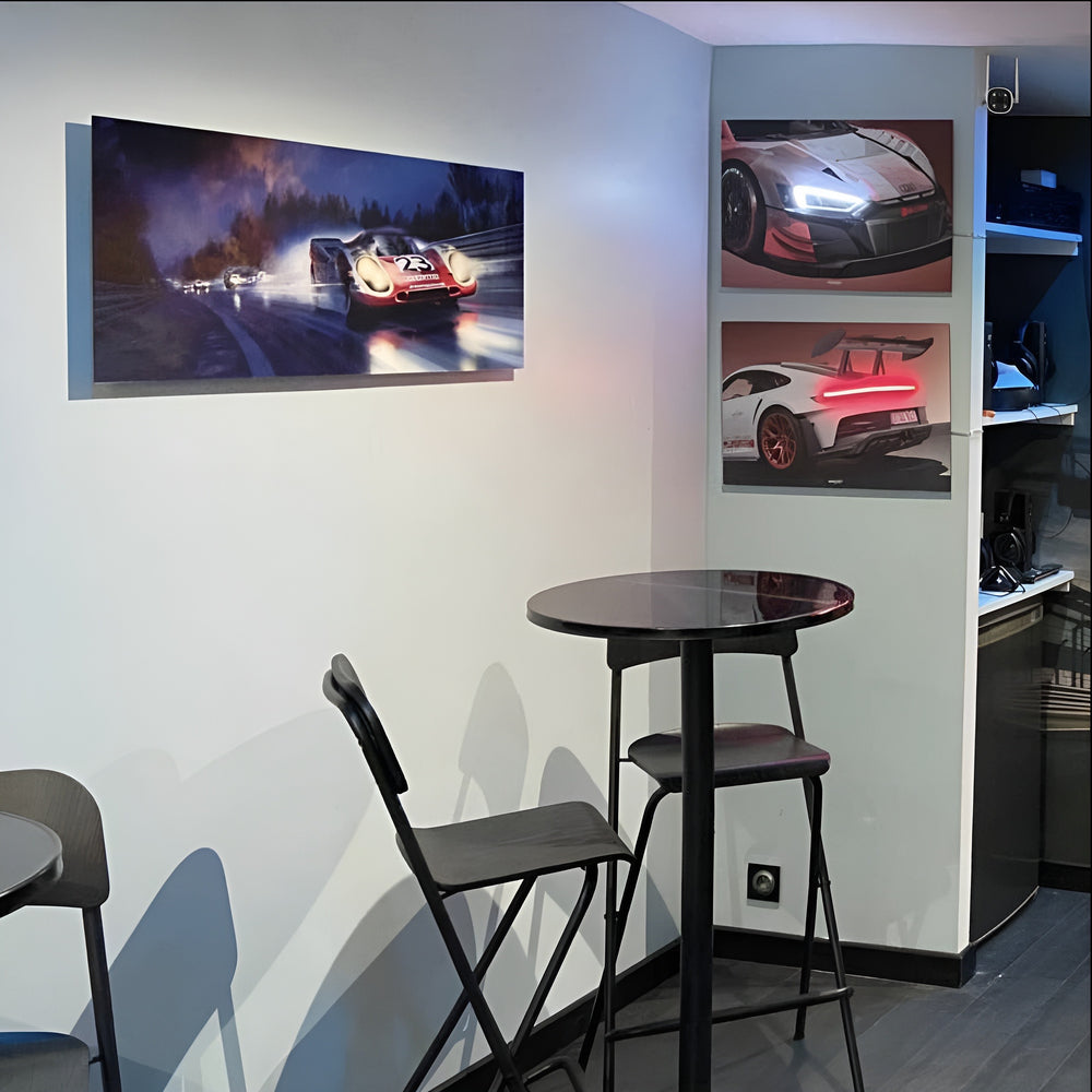 We have been creating ARTISTIC wall decorations, illuminated with LED neon light, specifically for car enthusiasts.